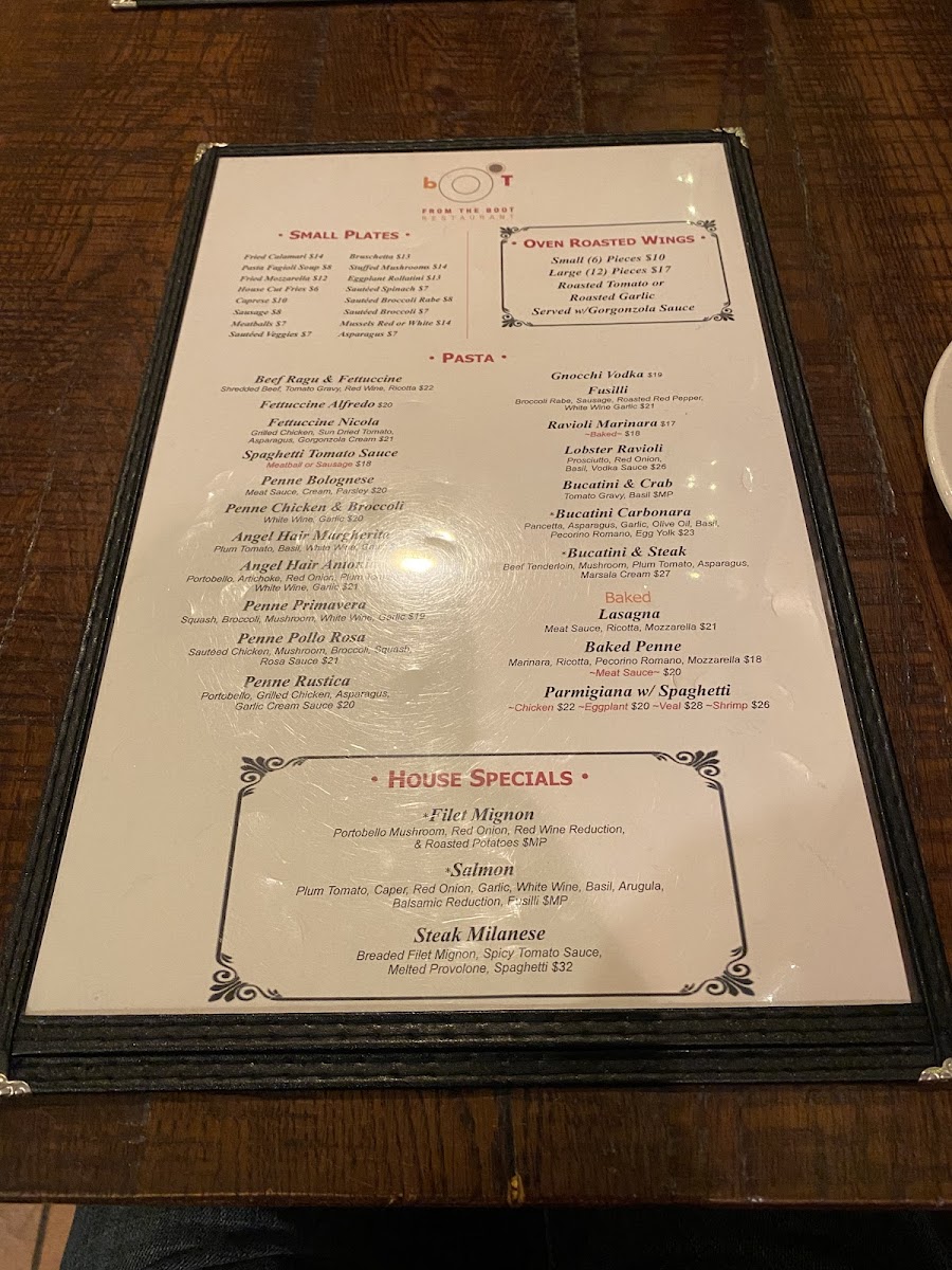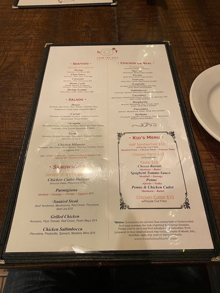 From the moment you step into From The Boot, you’re welcomed with a relaxed atmosphere that feels both intimate and inviting. The warm, rustic decor paired with soft lighting sets the perfect backdrop for a family dinner, a casual lunch, or a cozy date night. The attentive staff is known for their exceptional service, ensuring you feel right at home as you embark on your culinary journey.